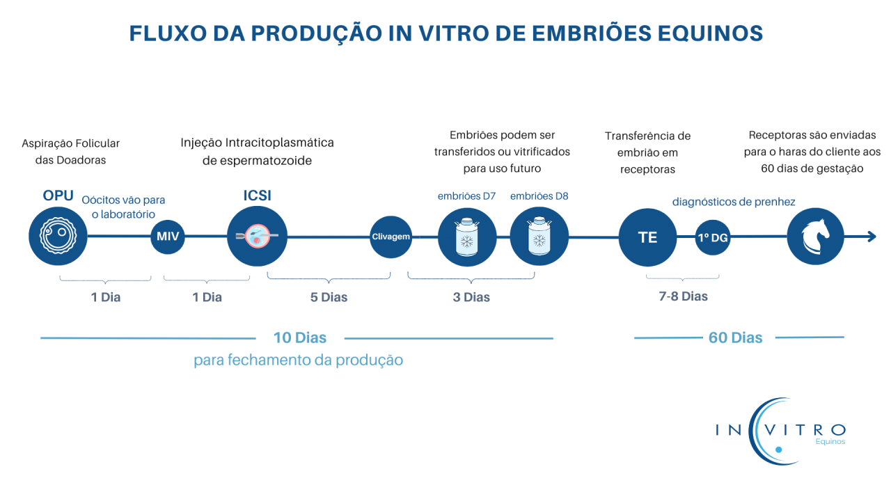 Mas isso é somente uma média, pois algumas éguas (30%) geram múltiplas gestações em um único trabalho de aspiração, enquanto outras, com poucos oócitos ou com sêmen de baixa viabilidade, terão um desafio maior para produção de um embrião e prenhez.